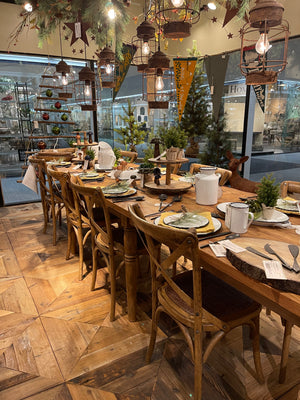 Aptly named our "reunion table," this piece seats even the biggest family get-togethers comfortably! Our largest table yet, this piece is ideal for entertaining and hosting farm-to-table meals. Hinged in middle, it can be folded in half for storage or easy transportation in the back of your truck.