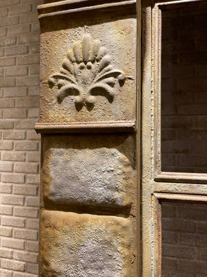 This masterfully carved Market Square façade display is perfect for creating dedicated space to showcase everything from potted plants and flowers to seasonal dioramas.