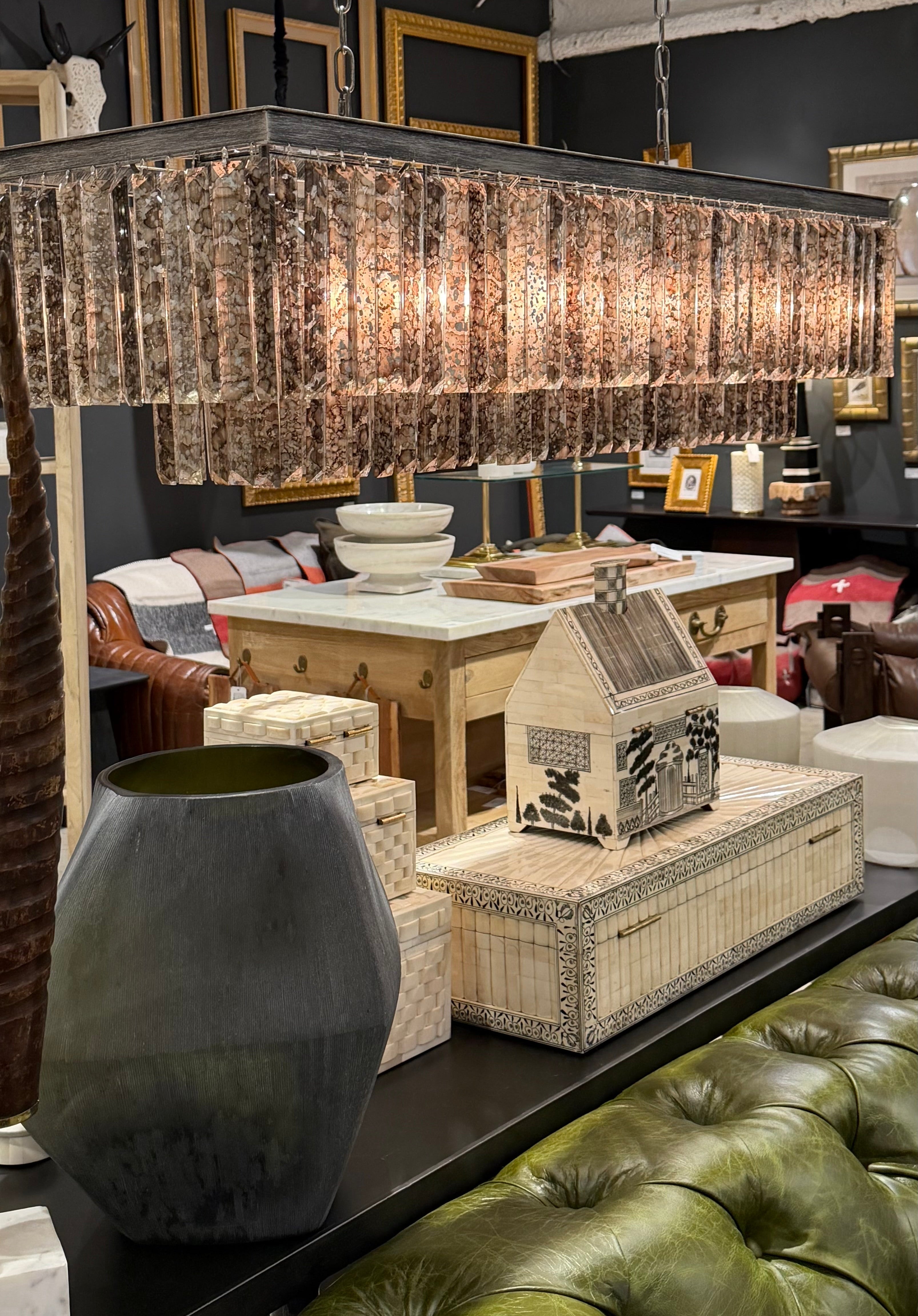 The Mercury Galley Chandelier exemplifies timeless design with its exquisite art deco aesthetic. Composed of hundreds of hand-cut glass elements finished in mercury paint, this statement fixture casts a luminous glow throughout dining areas, foyers, bedrooms, and grand halls.