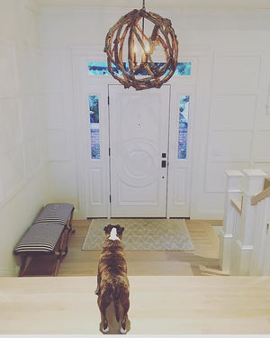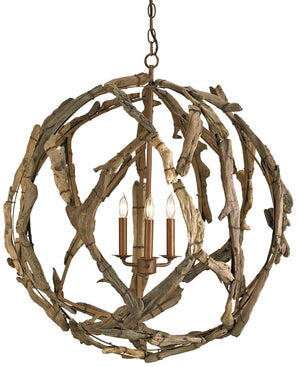 Bring the outdoors in with these elemental globes. A perfect accent piece. Showcasing the humble virtue of a natural world and an ardent devotion to workmanship, the Pacifica Orb chandelier is meticulously constructed by wiring hand-selected pieces of natural driftwood to an iron frame.