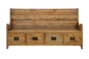 This versatile bench offers both style and functionality, featuring four spacious drawers that make it a coveted addition to any room. The vintage metal hardware adorning each drawer adds to the overall aesthetic, creating a cohesive and vintage look. Additionally, the bench provides the option to add a cushion for extra comfort, blending practicality with comfort seamlessly.
