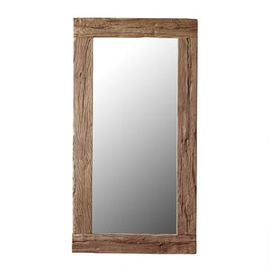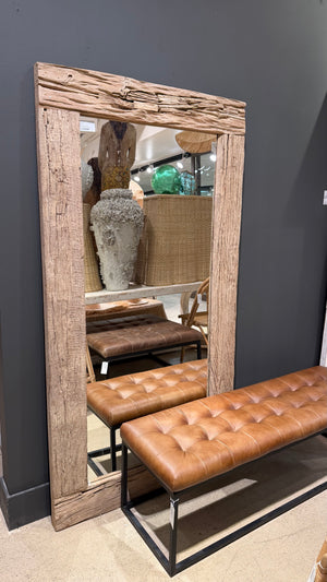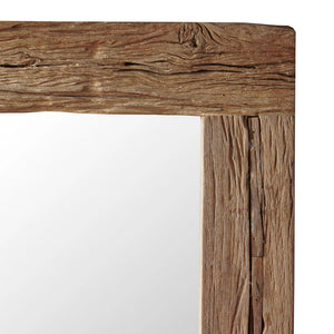 The Rustics Teak Mirror features an oversized frame crafted from reclaimed teak wood with a richly textured surface, lending a charming farmhouse style. Ideal for entryways or bedrooms, it can be positioned leaning against a wall or mounted either horizontally or vertically. The wood is meticulously cleaned and retains its natural finish, highlighting its authentic character.
