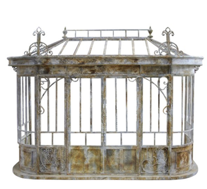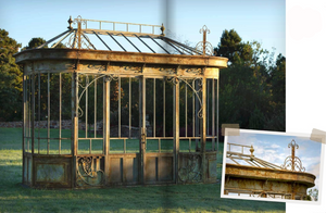 Exquisitely detailed ironwork façade for outdoor / indoor conservatory, greenhouse, sunroom, gazebo or other. Has the ability for aftermarket glass installation.