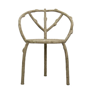 The three-legged construction of this Faux Bois Chair makes is immediately eye-catching. Crafted from iron, the Faux Bois Chair, Three Legs, is an open-frame with a rounded back and looks deceptively like its made from branches. Faux Bois literally translates as "false wood" and is a Renaissance furniture style that offers an artistic representation of tree branches, natural wood and wood grains. To achieve the distinctive, vintage-inspired patina requires more than 10 meticulous processing steps!