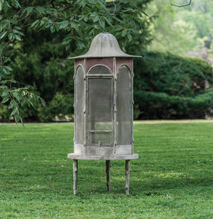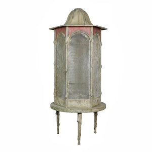 Constructed of iron faux bois, this Aviary can be used indoors or out to add a touch of novelty and intrigue. The French-inspired, Aged French Aviary is designed with faux-weathered metal to provide a vintage look. Fill with potted plants or a statuesque piece. Assembly required, hardware provided.