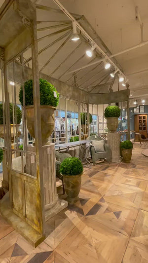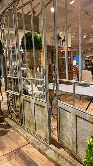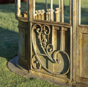 Exquisitely detailed ironwork façade for outdoor / indoor conservatory, greenhouse, sunroom, gazebo or other. Has the ability for aftermarket glass installation.