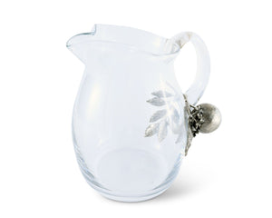 A stunning blend of exceptional design and versatility defines this Orange Blooms Glass Pitcher. Meticulously crafted from Pewter and Glass, it features a handle adorned with vibrant oranges, delicate leaves, and bright flowers, all captured in exquisite detail. The lifelike textures in high-quality pewter stand out in sharp relief against the smooth glass, making it a perfect centerpiece for any floral-themed table setting. Its generous size of 4.75' W x 8' H makes it ideal for serving drinks at gatherings or as a standalone decorative piece. Truly a standout choice and a perfect gift for lovers of luxury and detailed designs.