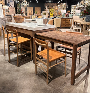 Our Rustic Marble Island, a truly unique piece crafted from reclaimed wood and topped with a luxurious marble counter. This island features a special pull-out table that can comfortably seat two to four people, along with space for two stools on one side of the marble counter. On the other side, a convenient shelf provides the perfect spot for storing wine or kitchen essentials. Combining functionality and beauty seamlessly, the Rustic Marble Island is a standout addition to any kitchen, offering both practicality and aesthetic charm in one exquisite piece.