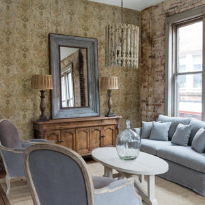 This elegant and sophisticated old southern home pattern transforms a wall with texture and color. Use this wallpaper to give a whole room new life or just add a small amount to a cabinet or bookcase to give it some personality.