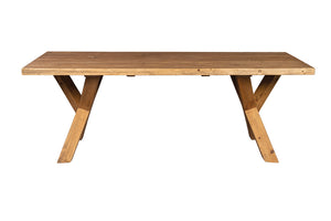 Smaller in scale, this superb table features a sturdy interlocking timber pedestal base. Thoughtfully, the base is engineered to provide ample room for all your guests tootsies. The reclaimed chunky planked pine top is protected from spills by the application of a clear coat finish.